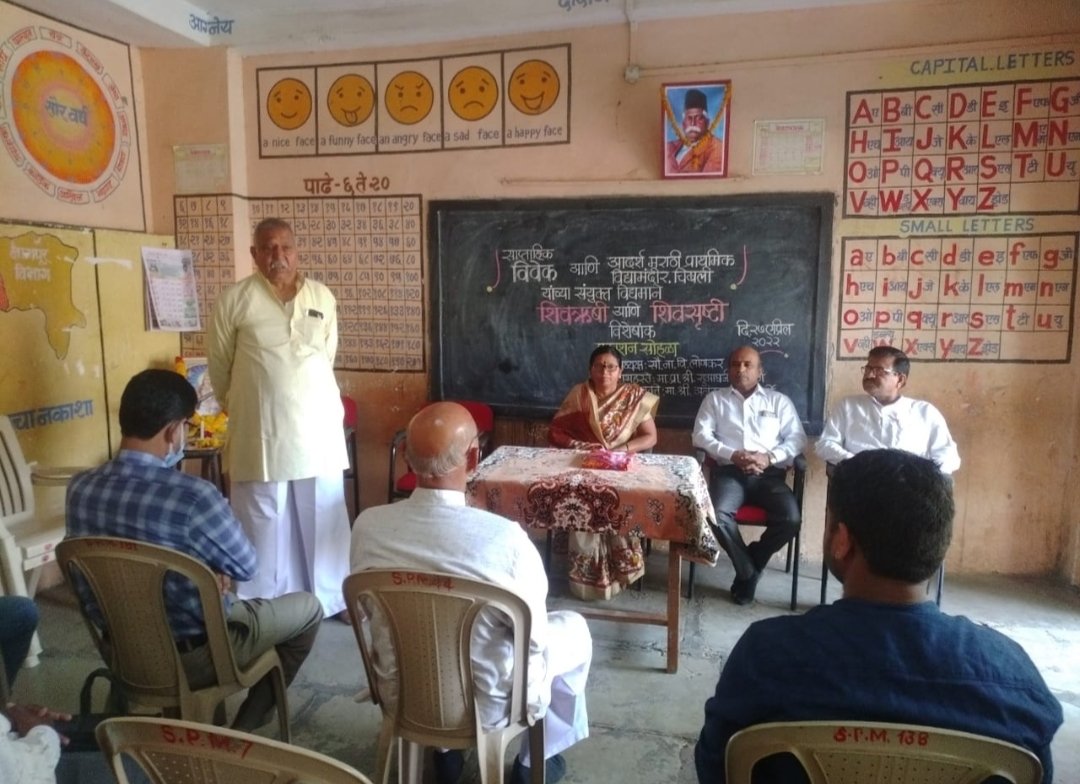 MH 28 News Live, चिखली : आदर्श मराठी प्राथमिक विद्यामंदिर चिखली येथे साप्ताहिक विवेक आणि आदर्श मराठी प्राथमिक विद्यामंदिर चिखली यांच्या संयुक्त विद्यमाने शिवसृष्टी आणि शिवसृष्टी या विशेषांकाचे प्रकाशन २७ एप्रिल रोजी करण्यात आले. कार्यक्रमासाठी अध्यक्ष म्हणून शाळेच्या मुख्याध्यापिका श्रीमती ना. वि. लोणकर, सदर विशेषांकाचे प्रकाशन एस. पी. एम. कॉलेजचे प्राचार्य सुभाष गव्हाणे, प्रमुख वक्ते अनंतराव कुळकर्णी हे लाभले होते.