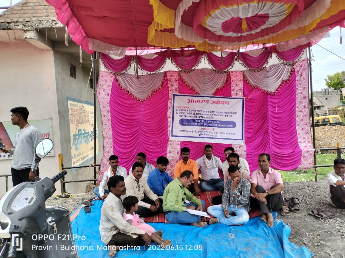 शहरातून वाहणारी व भिंगारा येथून उगम पावणाऱ्या पद्मावती नदी बाबत नागरिकांमध्ये एक आस्था आहे. या नदीच्या काठी पूर्वीचं जळगाव जामोद शहर वसलेल आहे. मागच्या वर्षी या नदीचे काही प्रमाणात खोलीकरण व संरक्षण भिंतीचे काम झाले होते, परंतु नदीला आलेल्या पुरामुळे जंगलातून विविध प्रकारचे बिया नदीपात्रात संपूर्ण नदीपात्र एरंडी झुडपांनी व्यापल्या गेले आहे. सद्यस्थितीत पावसाळ्याची सुरुवात झाली आहे. अशात मोठा पाऊस आला तर मुख्य प्रवाहाला अडथळा होऊन नदीपात्रातील पाणी मानवी वस्तीत शिरू शकते. हा धोका टाळण्यासाठी नगरपरिषदेने तात्काळ या नदीचे पात्र साफ करून खोलीकरण करावे जेणे करून नदीपात्र योग्य व सुरक्षित राहील तसेच जमिनीत पाणी मुरण्यास मदत होईल. अशा आशयाचे निवेदन यापूर्वी ६ जूनला नंतर १२ जून ला देण्यात आले होते. तरीही संबंधित कार्यालयाने कुठलीही कारवाई न केल्याने निवेदन देणारे नागरिक हे भीमनगर येथील पद्मावती नदीच्या पुलावरच बेमुदत उपोषणासाठी १५ जूनला सकाळपासून बसले आहेत.