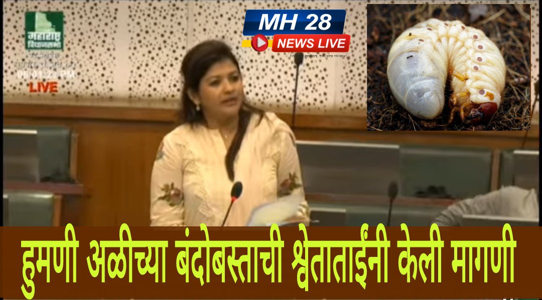 MH 28 News Live / चिखली : मतदारसंघात सोयाबीन पिकावर हुमणी अळीच्या झालेल्या मोठ्या प्रादुर्भावामुळे शेतकऱ्यांचे प्रचंड नुकसान झाले असून या पार्श्वभूमीवर आ. श्वेताताई महाले यांनी हा मुद्दा विधिमंडळात “पॉईंट ऑफ इन्फॉर्मेशन” अंतर्गत उपस्थित केला. त्यांनी सभागृहात शेतकऱ्यांच्या अडचणी मांडत कृषी विभागाकडून त्वरित पंचनामे करून नुकसान भरपाई देण्याची मागणी आ. महाले यांनी केली आहे.