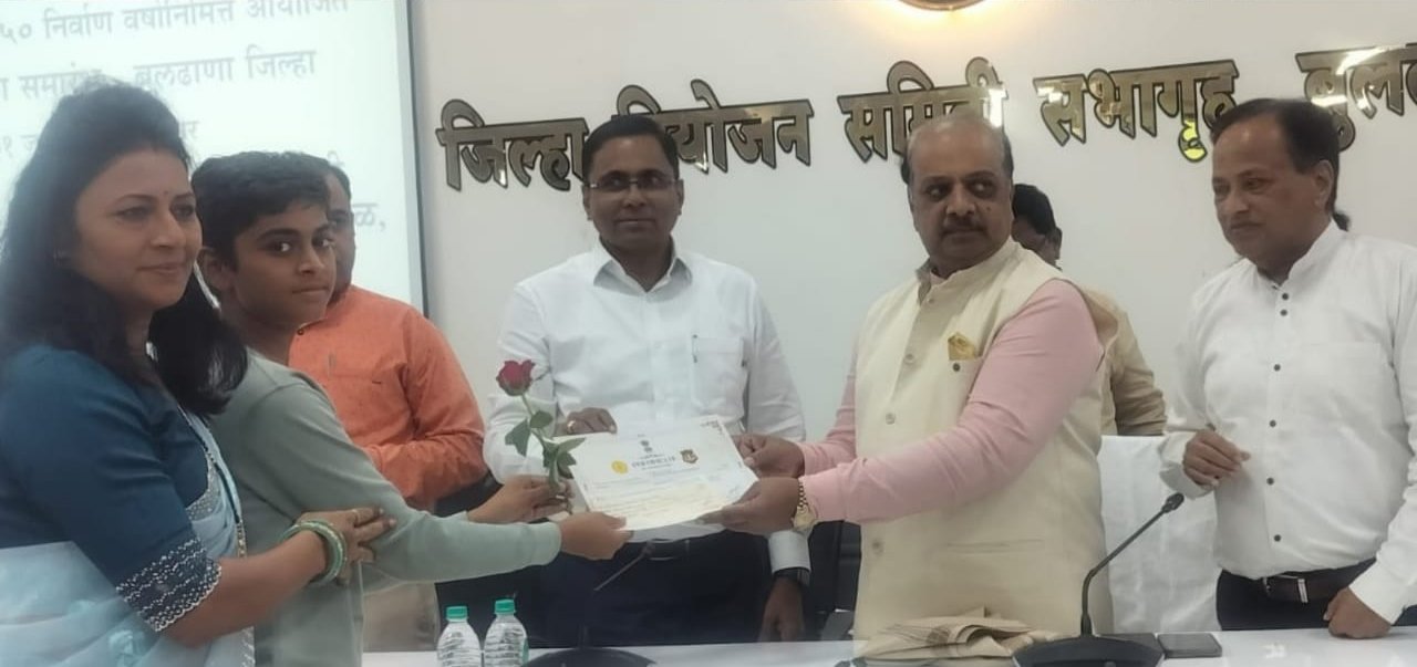MH 28 News Live / चिखली : भगवान महावीर २५५० महानिर्वाण वर्षा निमित्त सप्टेंबर २०२४ मध्ये आयोजित भगवान महावीर यांच्या चरित्रावर आधारित निबंध स्पर्धेत चैतन्य गुरुकुल मधील विद्यार्थी अरिहंत बोरुंदीया (वर्ग ५ ते ७ गट ) याने दुसरा क्रमांक आणि कु.ऋतुजा सर्जेराव चेके ( वर्ग ८ते १० गट) हिने पाचवा क्रमांक मिळविला , गुरुवार दि. ३१ जुलै रोजी जिल्हाधिकारी कार्यालयातील नियोजन भवन येथे आयोजित बक्षीस वितरण समारंभात या दोन्ही विद्यार्थ्यांना जिल्हाधिकारी डॉ किरण पाटील आणि ललित गांधी (अध्यक्ष , जैन अल्पसंख्याक आर्थिक विकास महामंडळ महाराष्ट्र राज्य ) यांच्या हस्ते प्रमाणपत्र आणि रोख बक्षीस देण्यात आले.