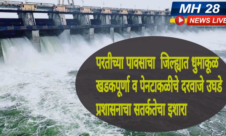 MH 28 News Live / बुलडाणा : जिल्ह्यात मुसळधार पावसाचा जोर कायम असून, हवामान खात्याच्या अंदाजानुसार गेल्या दोन दिवसांत मोठ्या प्रमाणावर पर्जन्यवृष्टी झाली आहे. यामुळे नद्या-नाले दुथडी भरून वाहू लागले असून, वाढत्या जलसाठ्याला आळा घालण्यासाठी प्रशासनाने धरणांचे दरवाजे उघडण्याचा निर्णय घेतला आहे.